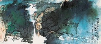 泼彩画法是张大千在继承唐代王洽的泼墨画法的基础上,揉入西洋绘画的色光关系而发展出来的一种山水画笔墨技法,独步古今,引领潮流,天下无能望其项背者。晚年变法并没有妨碍他对传统技法的继承、探研和发扬,而是互补互长,相得益彰,创造出一种半抽象的墨彩交辉的意境。