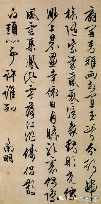 徐渭书法方圆兼济,轻重自如,笔墨纵横,貌似狂放不羁,其实暗含秩序,为后来书家效法。他最后在“几间东倒西歪屋,一个南腔北调人”的境遇中结束了一生,是一位生时寂寞,死后为后人顶礼膜拜的书画大家。