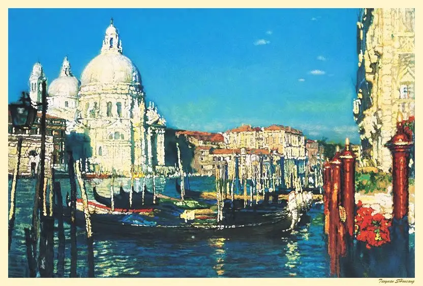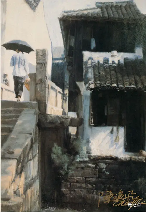 1980年代初至1990年代初,是陈逸飞“赴美创作”阶段,即大家耳熟能详的“水乡风景系列、古典仕女系列和音乐人物系列”阶段。