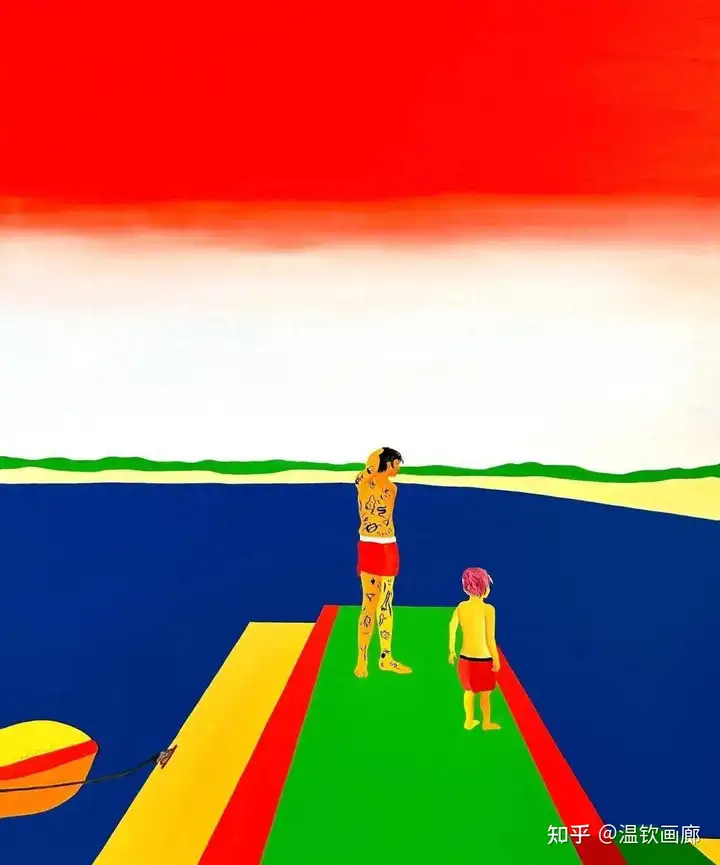 纳沃特·米勒的绘画风格以明快的色彩和简化的形式为特征,他擅长使用大块的色彩和对比来营造活力和生命力。他的作品常常被赞赏为充满活力、独特而具有魅力,展现出对色彩和形式的独特理解和创造力。