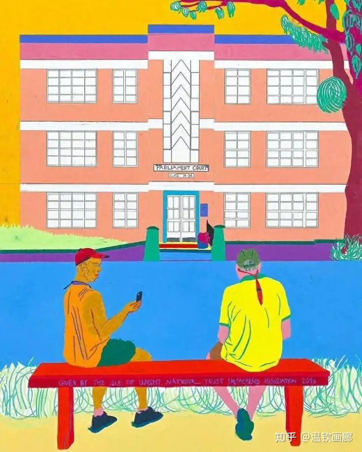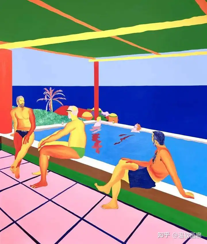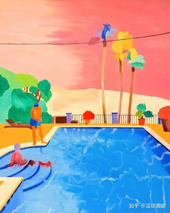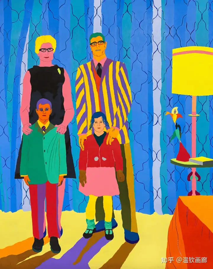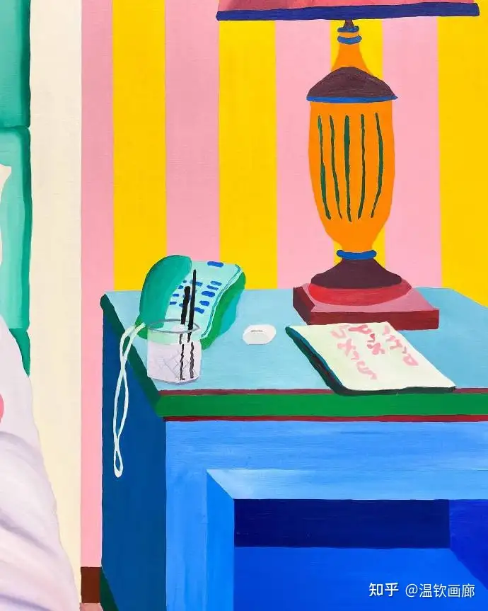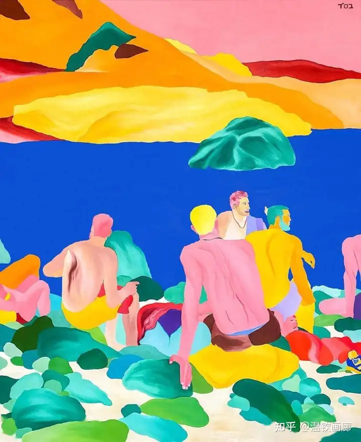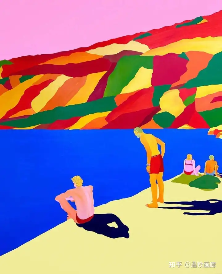 其作品聚焦亲密互动与情感主题,通过多层次拼贴和对比色营造戏剧性效果,风格兼具悲剧与积极情感。