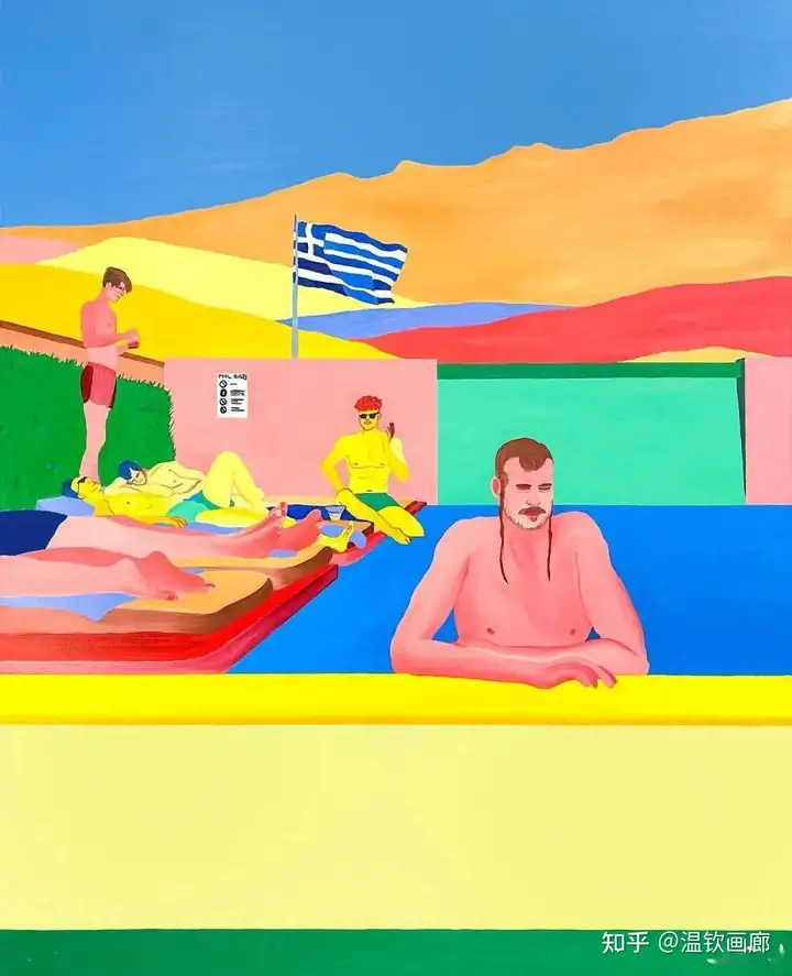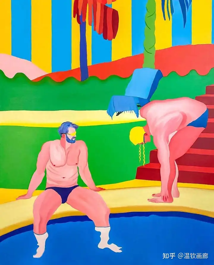 Navot Miller(纳沃特·米勒)是一位1991年出生的以色列艺术家,现居柏林,专注于绘画创作。他的作品以鲜艳的色彩和戏剧性场景为特色,常通过互补色和拼贴手法探讨亲密关系与情感主题。