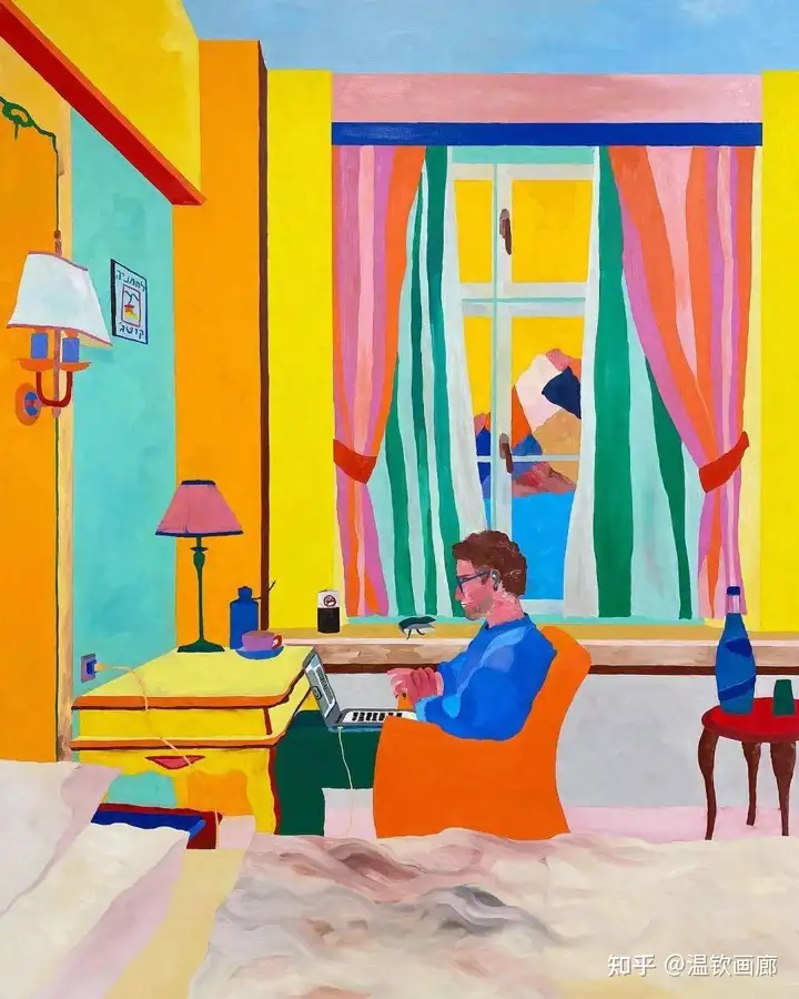 Navot Miller以鲜艳的色彩展现了他的多层次个性。他的色彩选择并非随意,而是精心挑选,以创造和谐的调色板。在他的作品中,华丽的色调向观众传达了对现实的高度主观审视,通过记忆与感受的镜头,展现了一个全新的视角。