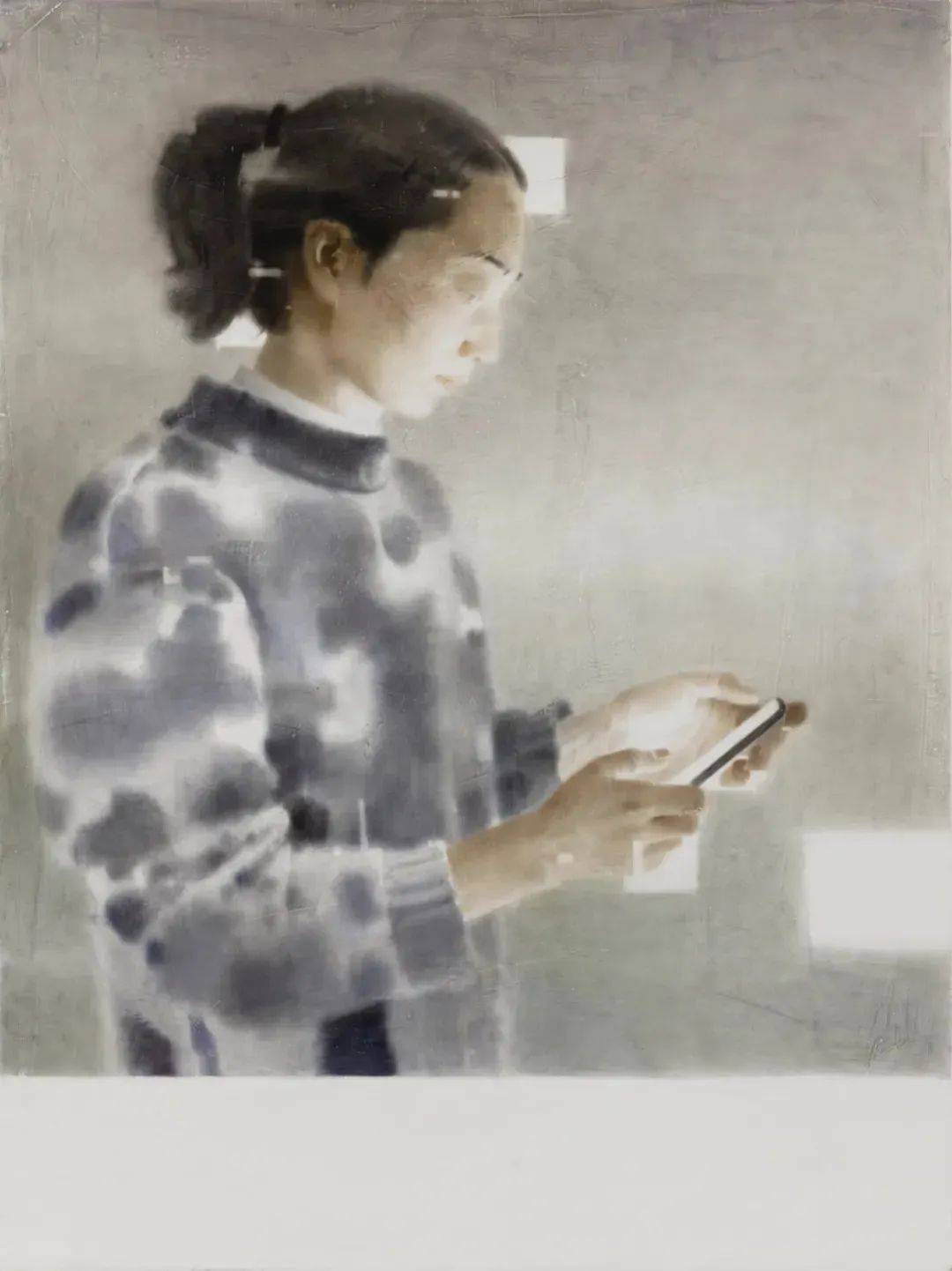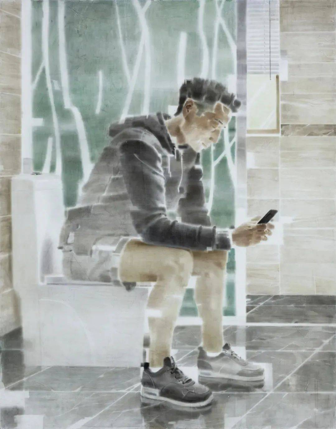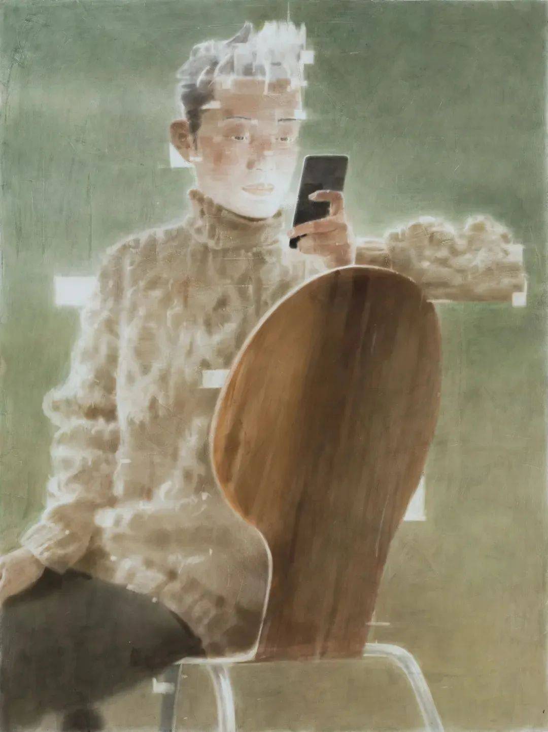 持手机的少年 / 夏禹 / 木板坦培拉 / 120x90cm / 2022