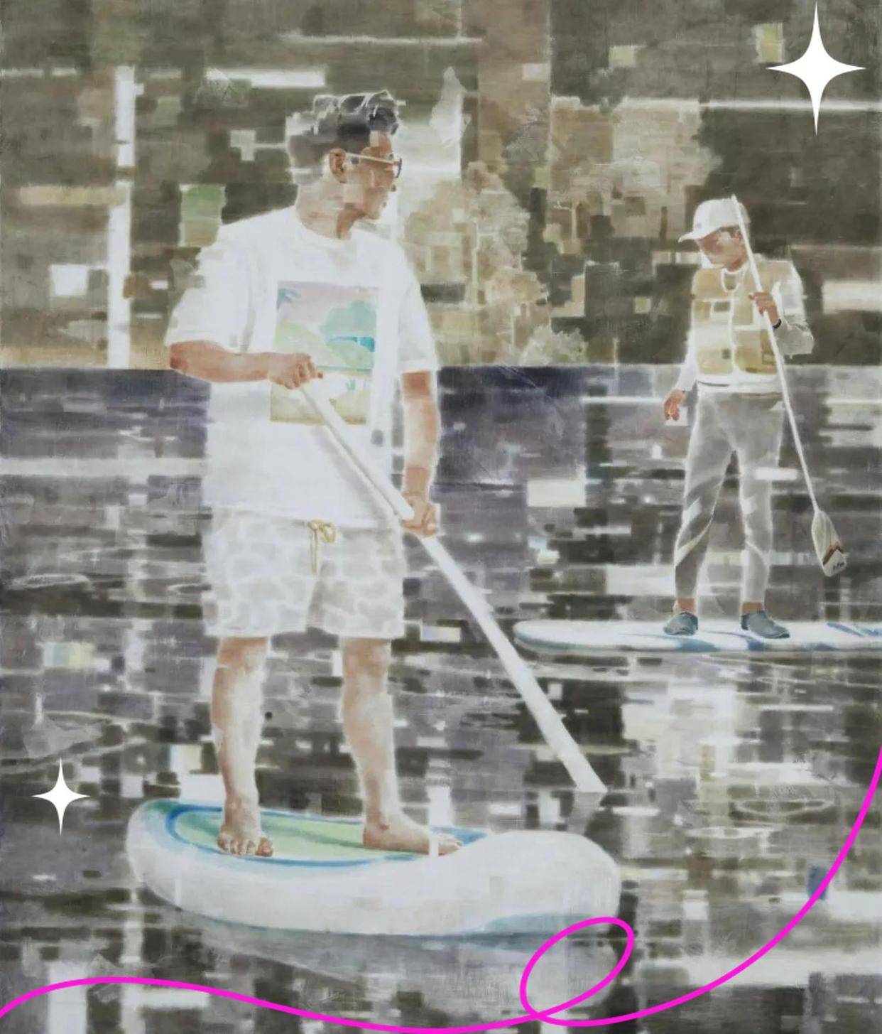 《湖边散步》 200×160cm 木板坦培拉 2023