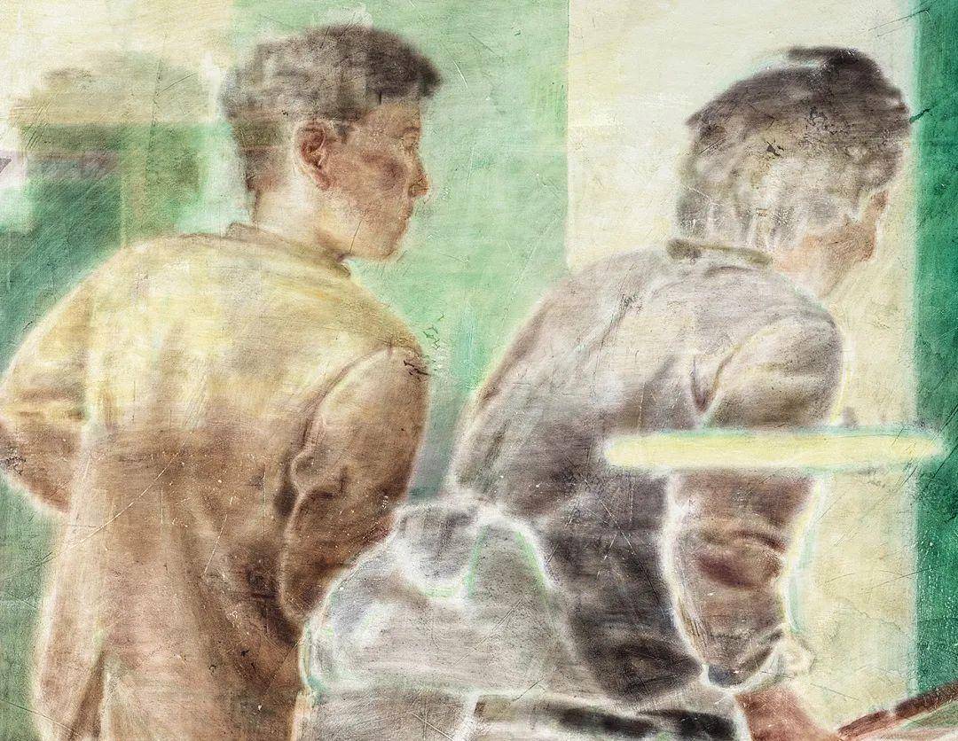 夏禹的人物形象塑造极具本土化特点,他们面庞饱满、眉目清秀,表情波澜不惊,透露出温良恭简的气息。这些人物在夏禹设置的日常或戏剧化场景中,时而优雅,时而诙谐,展现出他们的自在与匆忙。这些微妙而不易察觉的情绪在夏禹惯用的坦培拉技法下被进一步柔化、冲淡,将一张张相似的面孔凝聚成为在中国快速发展的时代里属于一个时代的大多数的人物肖像。