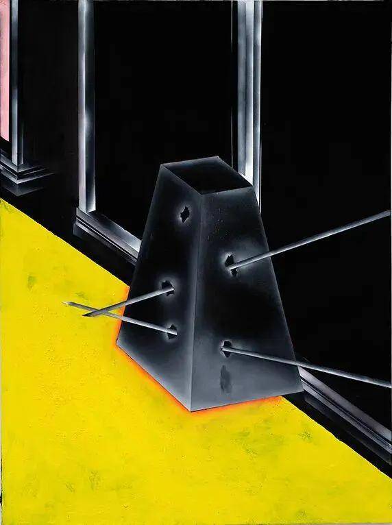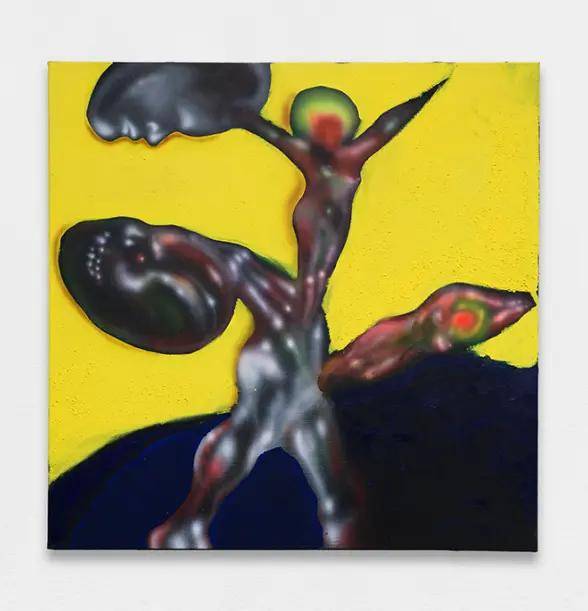 在传统策展视角下,油画往往强调笔触的物质感。但 Taburet 选择了相反的路径:他利用喷枪制造出一种近似于低分辨率屏幕、或是霓虹灯映射下的雾化质感。