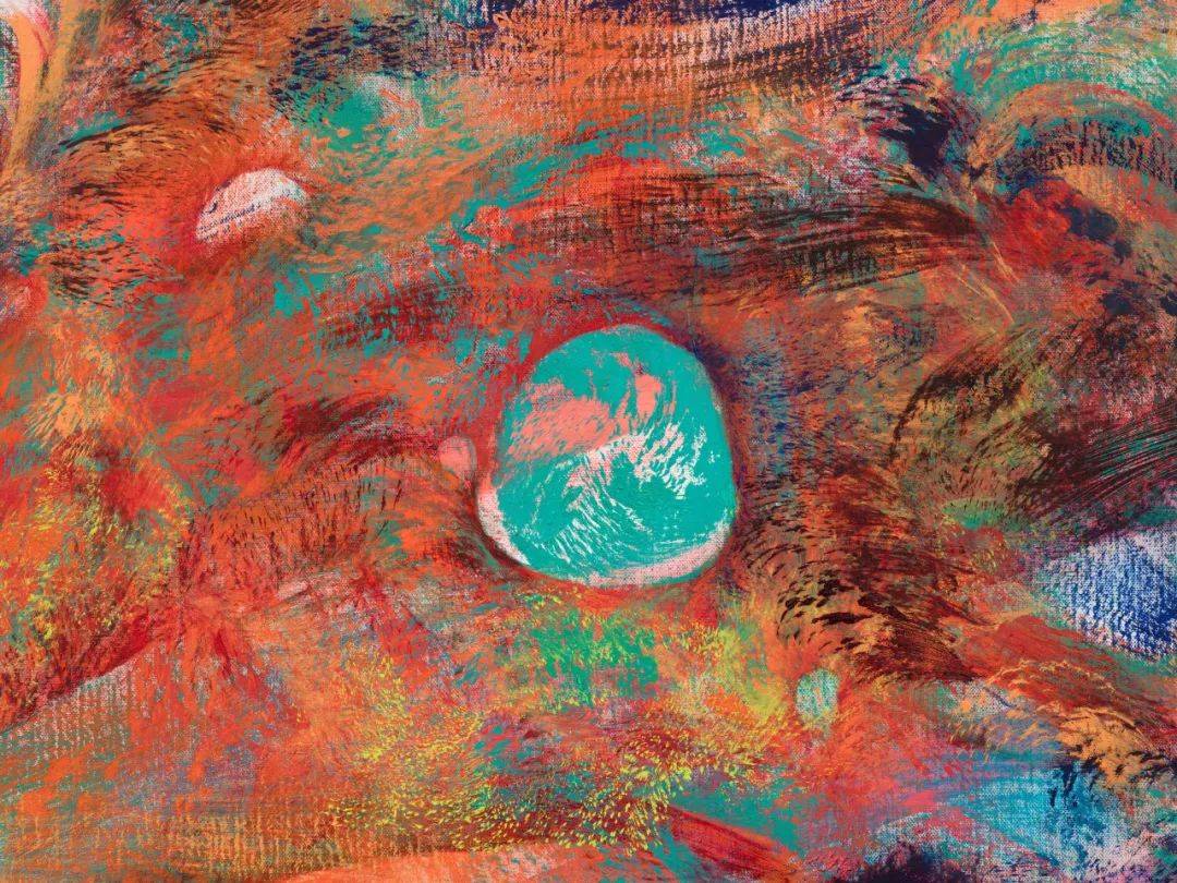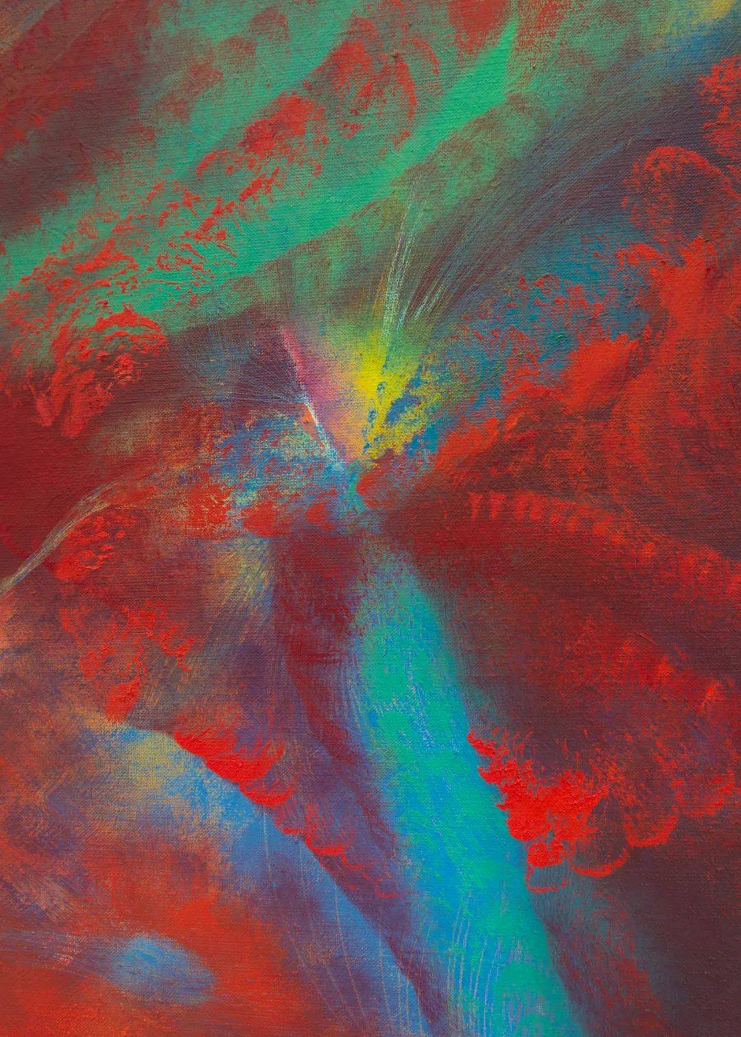 Bull的作品不仅在形式上创新,更在材料和色彩的运用上展现出独特的思考。她的每一幅画作都是一次涅槃重生的过程,充满了无尽的想象与可能。