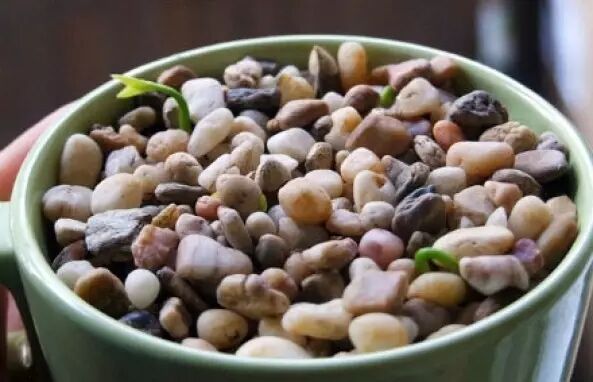 4.然后上面用粗砂或小石子盖上。也可以盖上保鲜膜,2到3天喷点水,一周左右发芽。