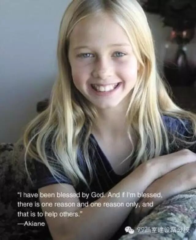 Akiane1994年7月生;是当今世界公认的“天才”画家兼诗人,四岁开始作画,六岁开始作诗。并且还是一位较为出众的深蓝小孩。她的作品最低20美元,最高6万美元交易.她 最出名的两幅画便是他为耶稣画的那两幅油画(即其八岁创作的《和平王子》和九岁时的《父啊,原谅他们吧》。她和她的作品曾多次登上一些国际的电视台和杂 志,她的网站年点击量超过1.5亿次。她的画不同于普遍的画作风格,充满意境且富有哲理,似乎在告诉人们一些道理。她的话,对事物的看法往往非常新颖,富 有灵性和哲理,让人沉思和感悟。她的诗更能深层次的说明一些哲理。在06年时,她还出版了两部书籍。作为一名闻名世界的早年成才的“天才”画家兼诗人,阿 琪雅纳把卖画作(以及其印刷品)和书籍赚来的大部分资金都用来扶持家庭和捐助非洲,立陶宛等地区。而且她也一直在参与一些活动,鼓励一些年轻的企业家,帮助贫困地区,让那里的人也能过上辛福的生活。