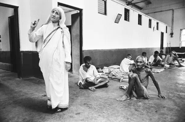 一个18岁的姑娘,自己都居无定所,而她每天做的事,就是推着小车在垃圾堆里、水沟里、教堂门口、公共建筑的台阶上,去拣回那些奄奄一息的病人、被遗弃的婴孩、垂死的老人,然后到处去找吃的喂他们,找药给他们治病,求医生来帮助他们……