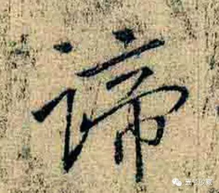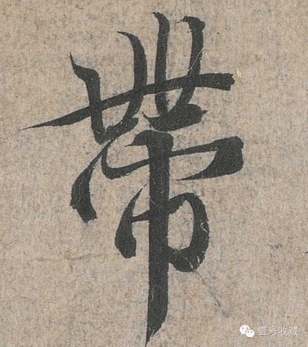 说兰亭序笔势多变,典型如上面“带”字,头部四个竖笔两直两曲,如果把它分成四个由直向曲的层次,则是①直,②次直,④曲,②最曲。绝不生硬板滞。