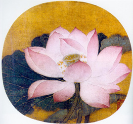 宋人《出水芙蓉》(旧题吴炳),善于选择生动的物像局部以“特写”式的手段使艺术形象更加突出。一朵荷花使人想到池中涟漪伴着荷塘月色的沁凉清香。