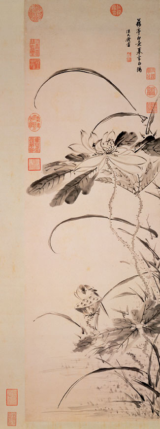 八大山人的荷花不是春色娇艳、欣欣向荣的鲜花,而是“溅泪”之墨花,是残叶败荷,一如他一向的画风,凄凉寂寞,冷意逼人。