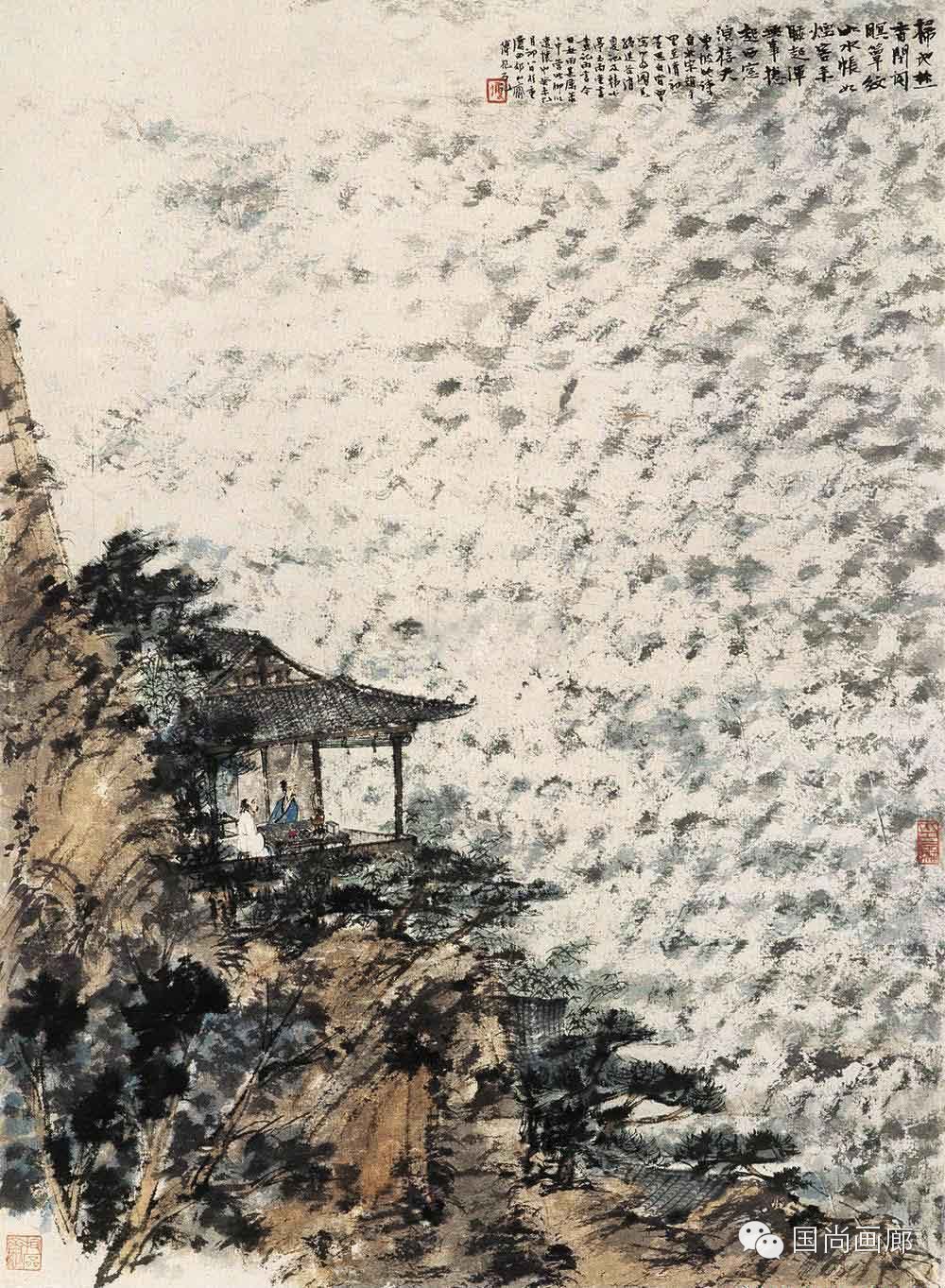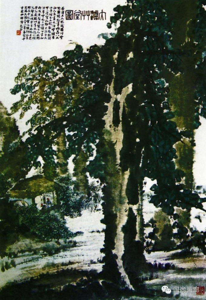 他很注意下笔的方向和速度,画倾盆大雨时用大笔猛刷,使人感到雨点的速度和力量;画江南春雨时,笔轻轻地在纸上飘忽,留下似有若无的痕迹,景物若隐若现,迷迷茫茫,表现出南方多雨季节雾蒙蒙的气氛。作品中浸透出大气的湿度感和温度感,为传统山水画注入了气体空间的观念。