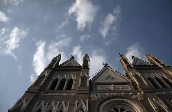 王府井天主教堂(东堂):始建于1655年的东堂数词惨遭国人的破坏,今天保存的建筑则是1904年由法国爱尔兰重建的罗马式大堂。当然,这里更是众多新婚之人常来之地。(图/曹伟)