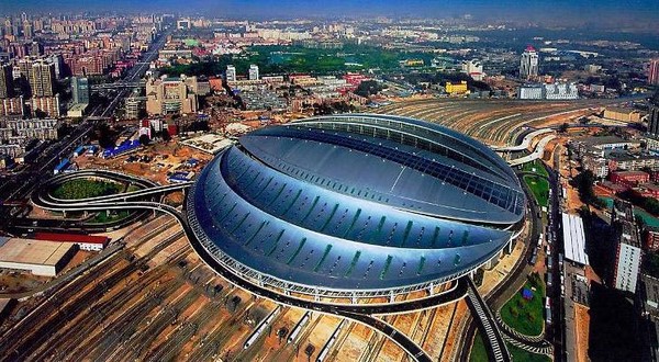 北京南站:当它正式启用的第一天,便宣布全球最大火车站正式落户北京。从空中俯瞰,它或许并不像英国设计师泰瑞·法瑞形容的那样灵感来自于“天坛”,反倒更像一个远古的三叶虫,卧在这片古老的土地上。(图/原瑞伦)