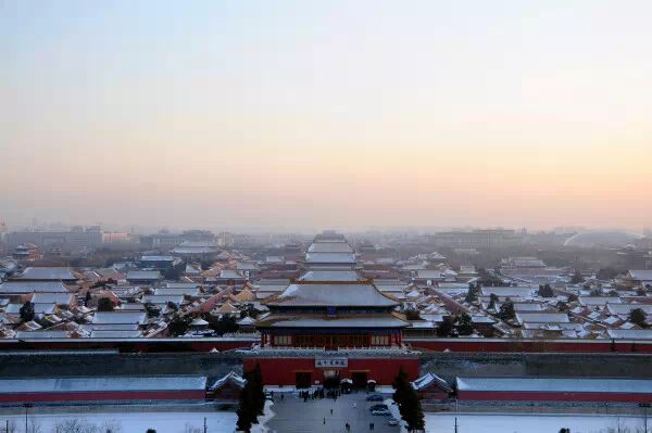 始建于公元1407年的紫禁城:2010年的第一场雪让其显得更加富丽无比。站在景山之巅,面对如此壮观与对称的建筑,除了感慨,还是感慨。(图/张祖华)