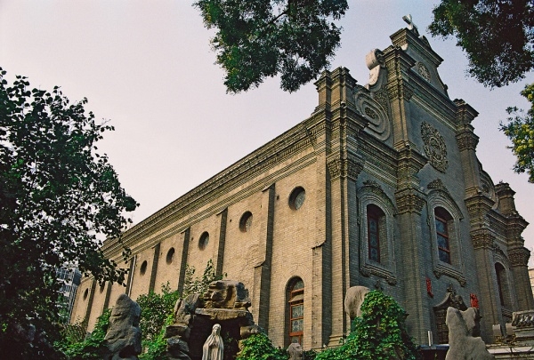 北 京宣武门天主堂(南堂):始建于1605年、重建于1904年的中国最古老教堂。 明朝万历年间,意大利传教士利玛窦首先兴建了它,其后清朝顺治年间汤若望又扩大其规模;此后的百年间,其数次毁于地震和火灾,终于在1900年彻底倒在了 义和拳的脚下。 而今天,其则是一座三层巴洛克式建筑,作为天主教北京教区的主教堂,地位也不容忽视。
