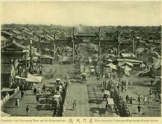 20世纪初德国人穆默拍摄的的前门大街:远望京城,完整的街道和布局不知令多少人大为赞叹。而今,早已面目全非。
