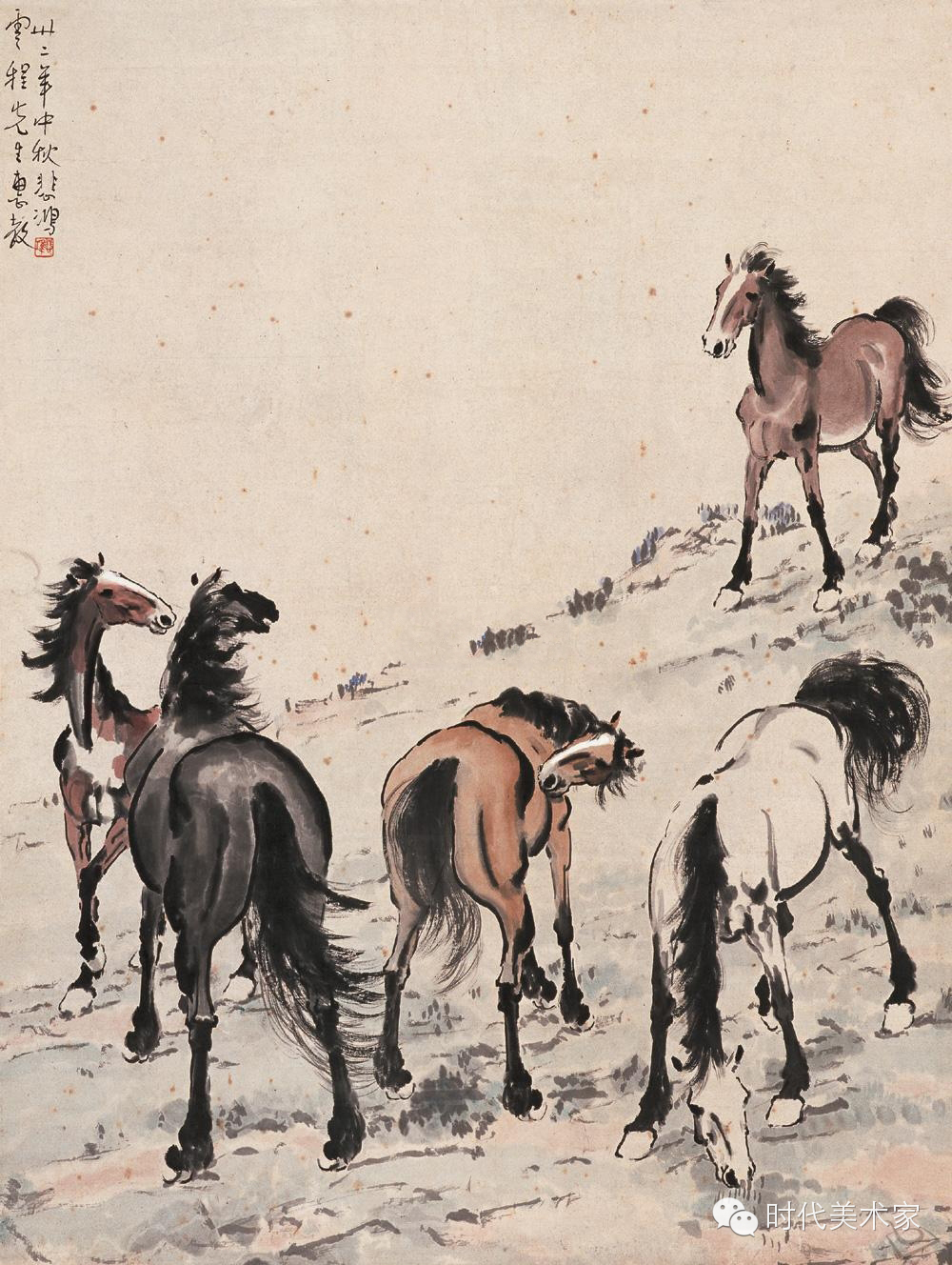 五骏图 纸本设色 94×71cm 1943年