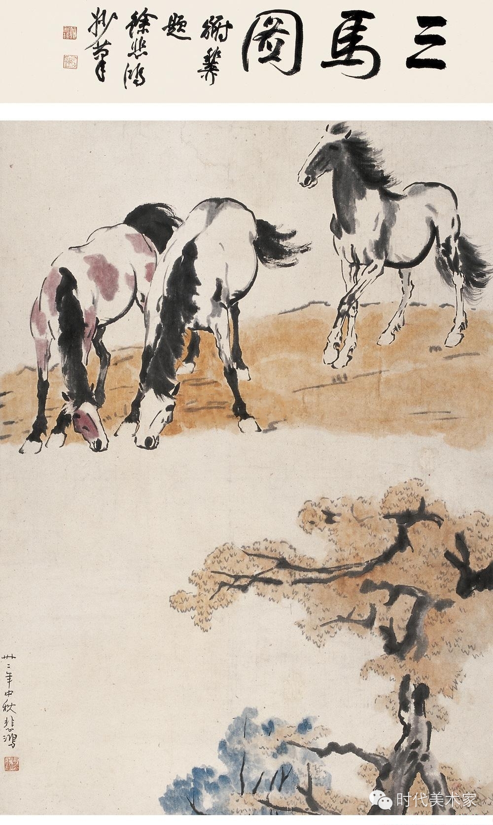 三马图 纸本设色 103×72cm 1942年