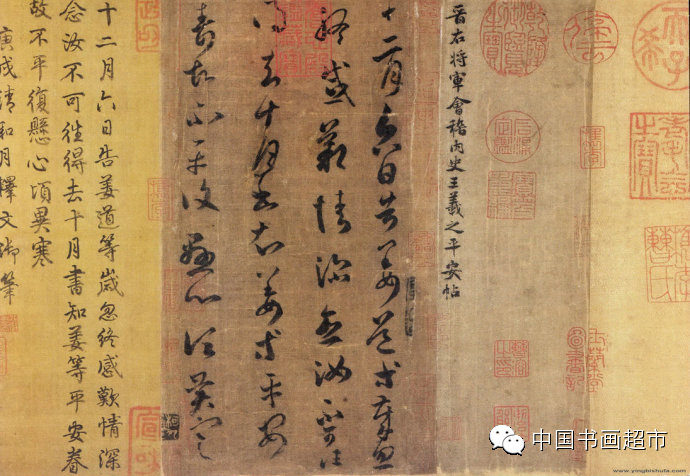 这件高古摹本曾经受乾隆帝盛赞,誉本帖“可亚时晴”,媲美“三希堂”瑰宝王羲之《快雪时晴帖》,民间流传王羲之高古摹本无出其右,堪称顶级藏品。王羲之 《草书平安帖》最早见于北宋著名丛帖《绛帖》,后经《宣和书谱》著录,当时共有九行,后被一分为二,嘉德秋拍亮相的为前半部,纵24.5厘米,横13.8 厘米,四行,四十一字。据悉,此帖著录于《石渠宝笈续编》,乾隆御题两次,且历经多位收藏家收藏,流传有序,极其难得。经考证,在元代被鉴定大家柯九思收 藏,在其左右及宋绫隔水的骑缝上盖有他多方收藏印。此后这件作品入明初收藏家李锦之手,之后为文徵明所得,明嘉靖二十年文氏父子将其刻入《停云馆法帖》卷 四,被认定为唐人所摹,后此帖归其长子文彭所有。万历年间流入北京,被王世懋、孙鑛等发现。明末藏于安徽歙县收藏家吴家凤处。清初分别藏于曹溶、李宗孔及 梁清标家,之后被收入内府。