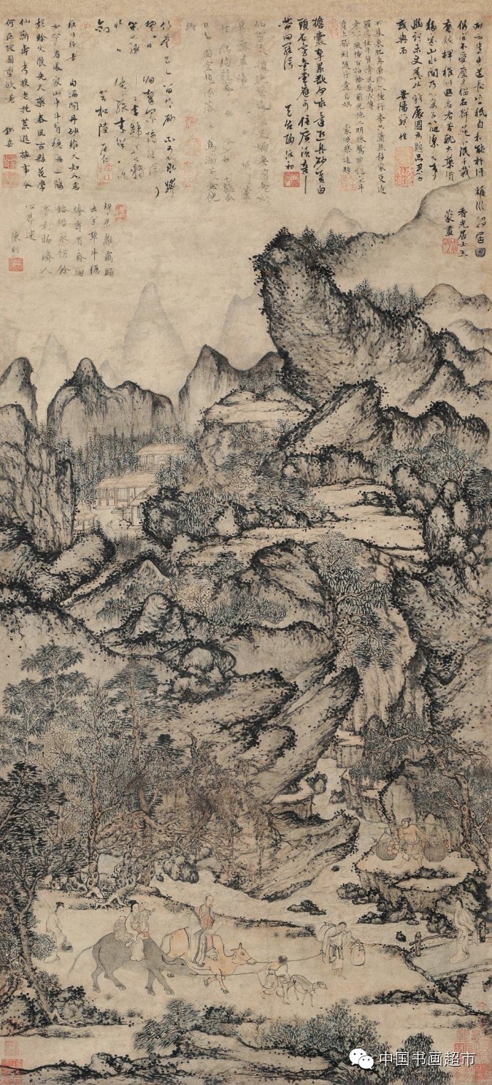 拍品介绍:《葛稚川移居图》是元代画家王蒙平生杰构,纸本设色立轴,纵139.5厘米、横58厘米,藏北京故宫博物院。《葛稚川移居图》描写晋人葛洪携 子侄徙家于罗浮山炼丹的情景。画上有与王蒙同时或稍后的七位大学者的题诗,包括王冕的老师韩性、“元四家”倪瓒、陶复初、陈则等。该画曾为明代大收藏家项 元汴珍藏,晚清入藏苏州过云楼顾氏家族。