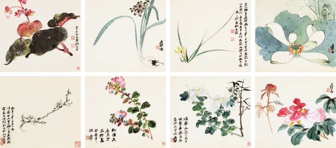 张大千 《花卉集锦册》设色纸本 24×26.5cm×8 永乐2020全球首拍 成交价:1265万元