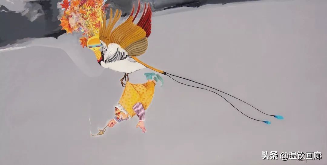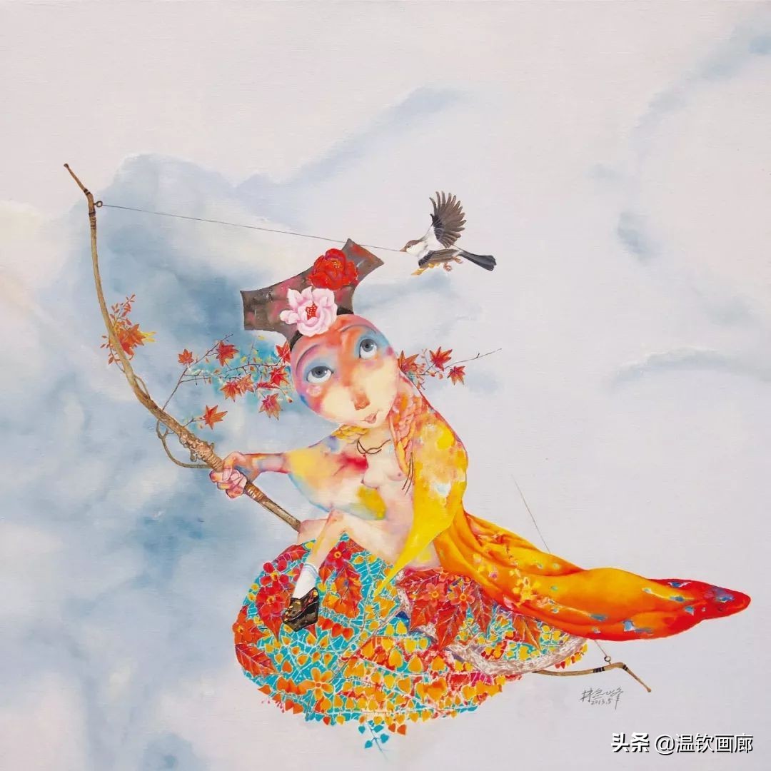 年轻的时候,内心充满了宣泄、抗争、困惑、愤慨,画面非常注重视觉冲击力,比如《被绑的飞行器》系列,《粉红床私语》《一枪把你挑下马》等等,都是那时内心的独白,心底下地火的燃烧。随着岁月的流失,时间像一把剪刀慢慢的修缮着自己的心灵,改变了我的世界观,面对丑陋不能用丑陋去对抗,那样会让自已变得很丑陋,要传递正能量,学会用美好去感化他人。飞翔、自由、包容、解脱、平和、释然... ... 已经成了我画面的主角,《绿野仙踪》、《一座城池》、《一花一世界》、《玩偶之家》这些作品表达了我对生活的寄托和对未来生命的感知。