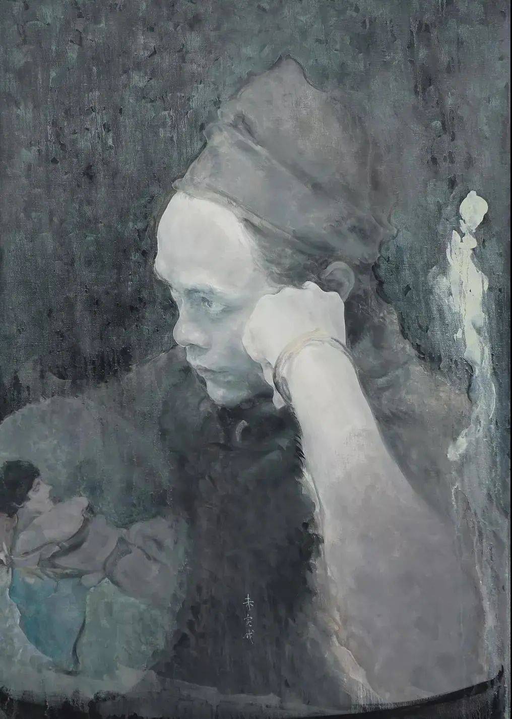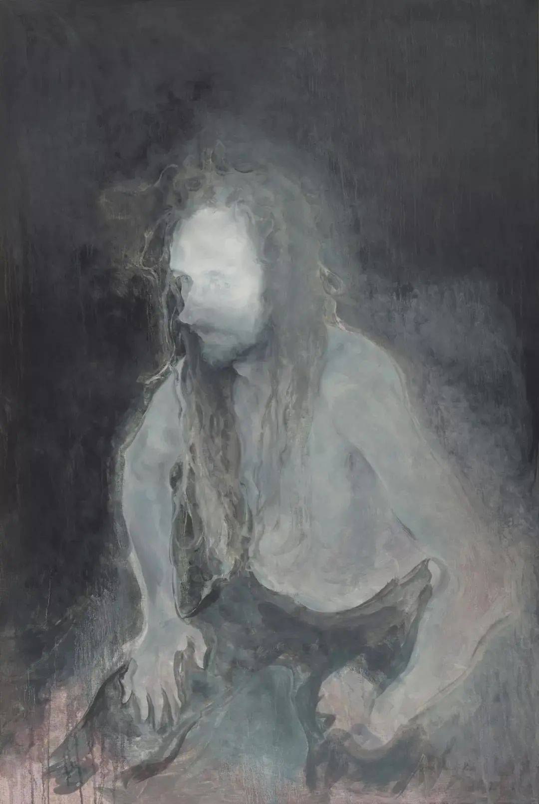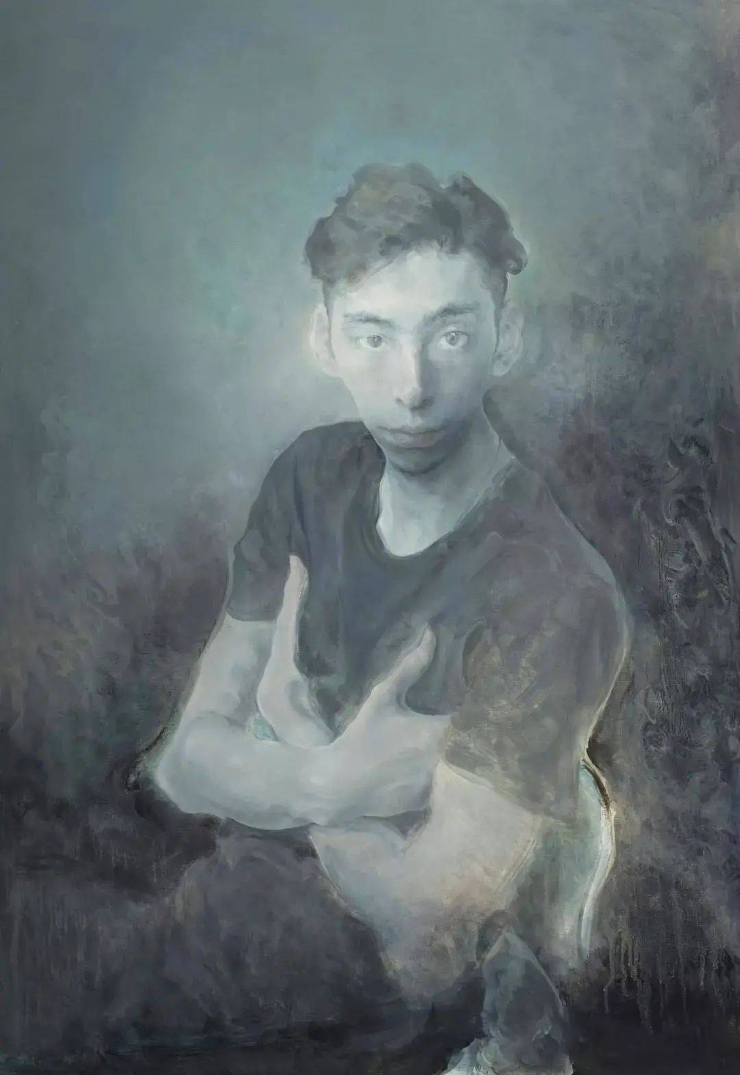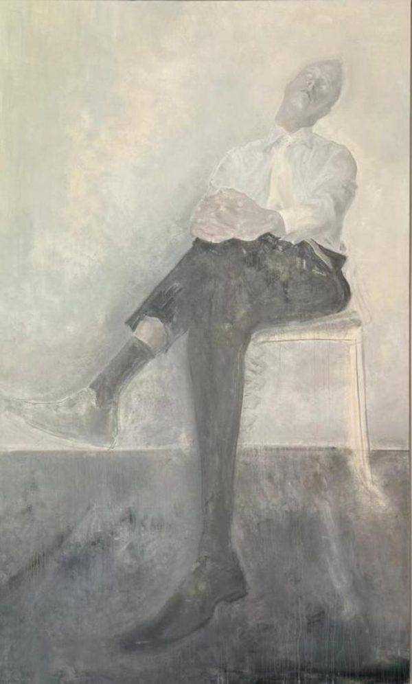他偏爱用灰色调和弱化立体感的手法,模糊人物与背景的界限,使肖像如同“灵魂而非实体”。在《椅子上的托马斯》中,人物的轮廓被虚化,皮肤质感却细腻如生,这种矛盾感形成强烈的精神张力。评论家吴振骏曾指出,毛焰的灰色“不是黑白调和的结果,而是多重色彩的复杂叠加”,这种技法赋予画面独特的诗意与哲学性。