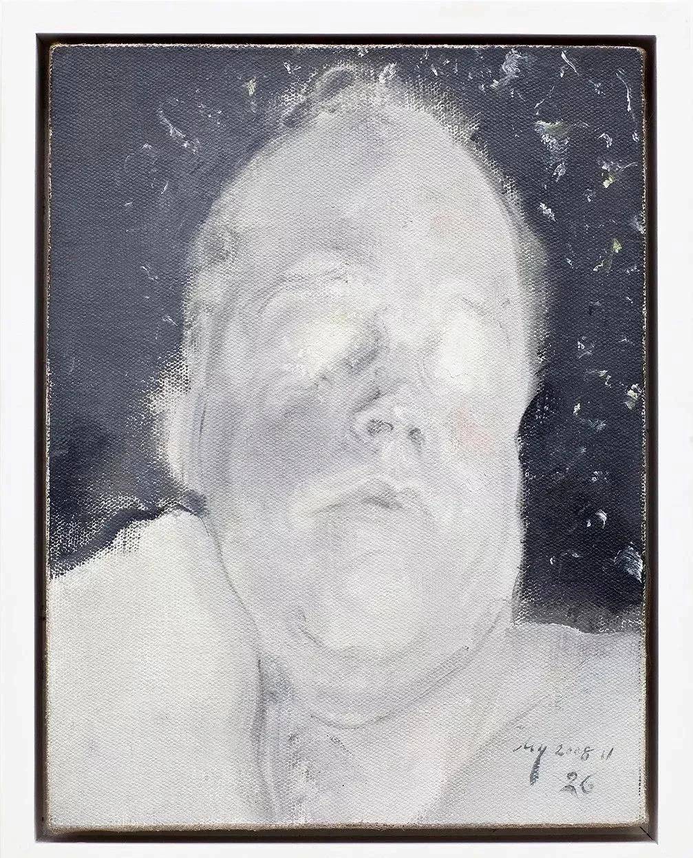 托马斯形象的重复让毛焰的绘画语言成为仅有的变量,色彩、线条、体积反复打磨……从这系列开始,毛焰的笔触痕迹不再有早期的尖锐,趋于平滑、模糊而无痕迹。托马斯时期,毛焰艺术中至关重要的模糊性达到顶峰:人像仅有头胸,那些混沌的灰色,近乎透明的局部令人无法追寻这名男子的社会身份。在语言的精湛化、简练化过程中,几百张托马斯似乎更可被看作“一种图示或符号”。