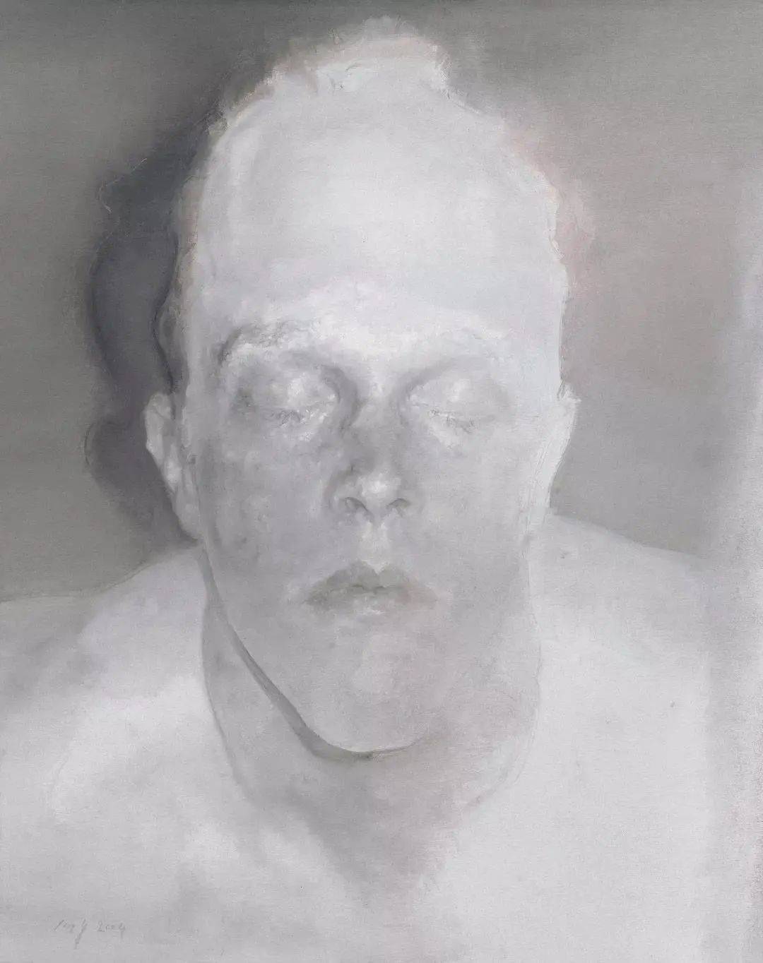 1999年开启的“托马斯系列”标志着毛焰进入全新阶段。托马斯的形象被剥离身份标识,成为纯粹的精神符号。画家通过反复刻画同一面孔,将时间性注入画面——每一笔触都记录着艺术家对人性理解的深化。这种创作方式,如同“在汪洋中悬浮的冰山”,既疏离于时代喧嚣,又以零度苍凉凝固住人类共性的思想。