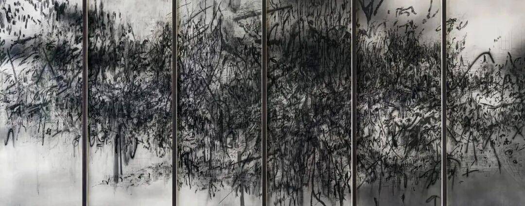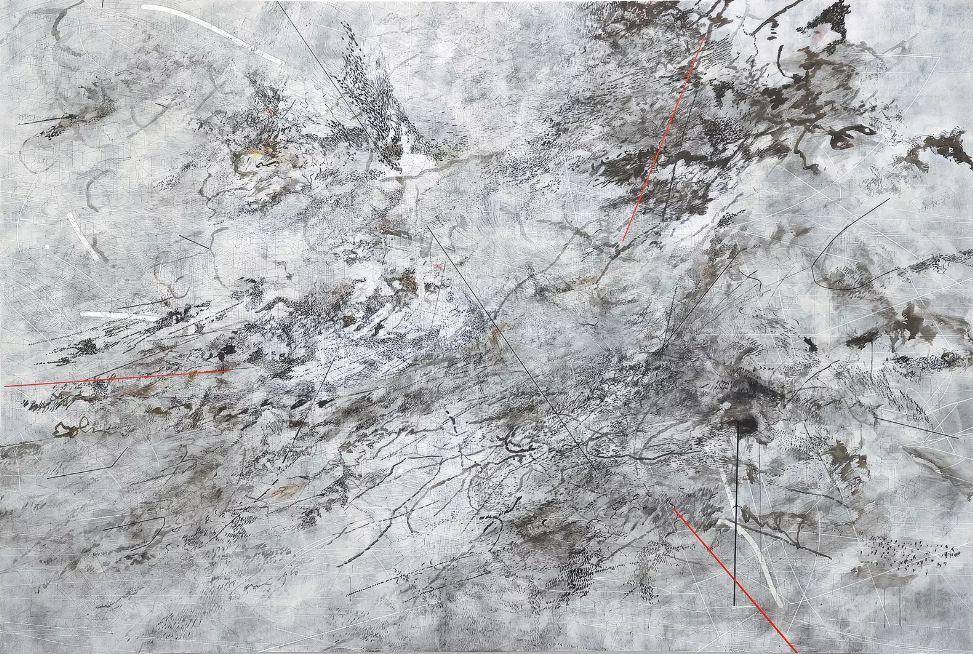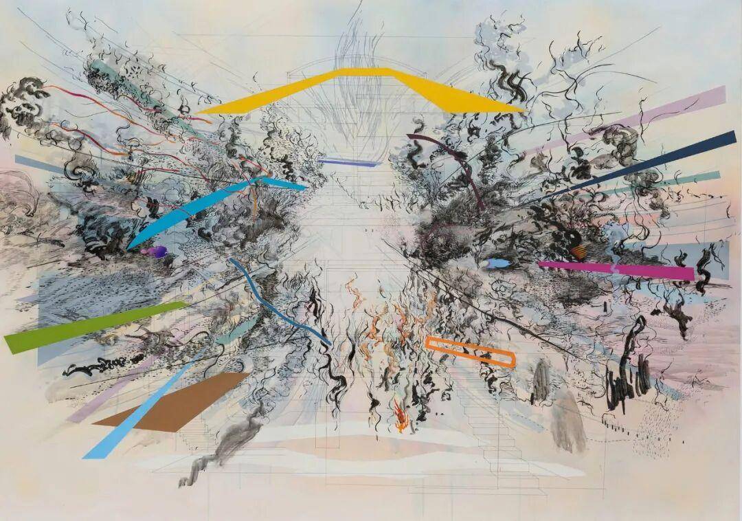 朱莉·梅赫雷图 《黎明与清晨的行者》,墨水 亚克力 画布,242.9 x 361 cm