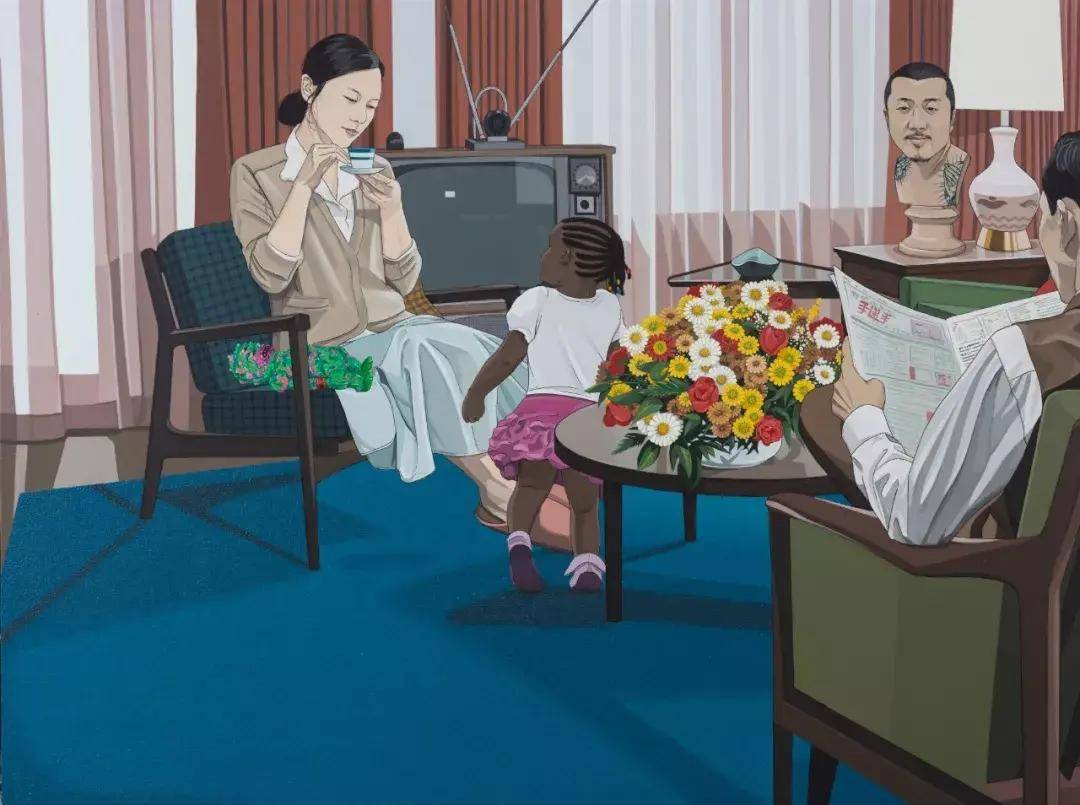 陈飞,《画家和家庭》,亚麻布、丙烯.,290 x 290 cm,2018