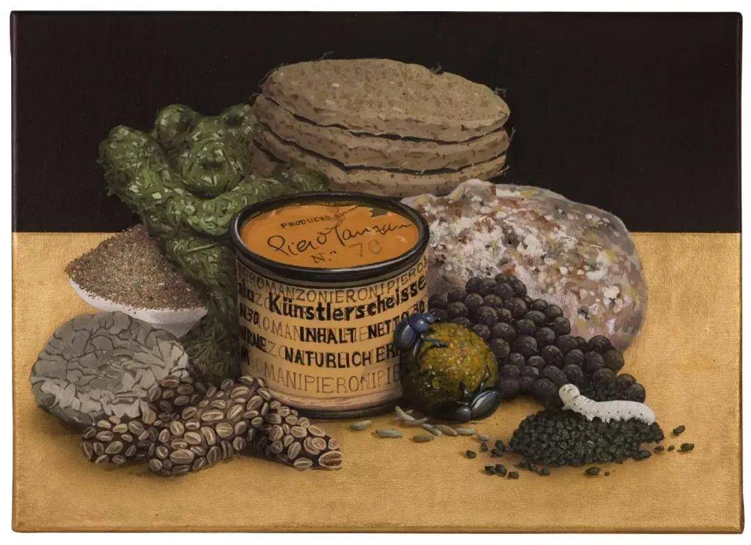 《情诗》来说,远看颇似一幅呼应新古典主义的花卉图案绘画,近看才发现,那被花朵簇拥的独特元素,是形色各异的婴儿大便。