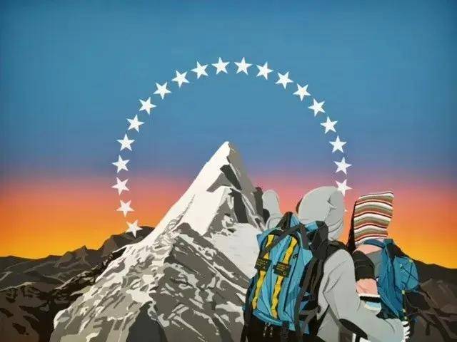陈飞,《攀登艺术的高峰》,亚麻布、丙烯,180 x 240cm,2015