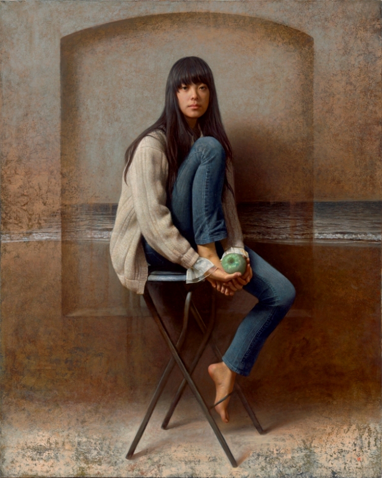 1990年蛋彩画《少女》获东京.上野森林美术馆银奖